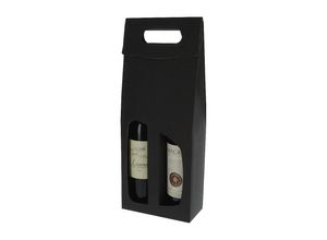 Flaschen-Geschenktragekarton mit Fenster, Innen-LxBxH 365 x 180 x 90 mm, schwarz, ab 80 Stk. Anzahl Flaschen = 2 Stück. Innenbreite = 180 mm. Innenlänge =…