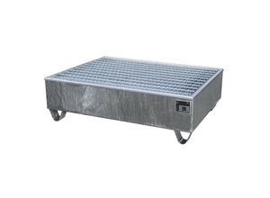 Stahl-Auffangwanne mit PE-Einsatz, für 200-l-Fässer, LxBxH 1215 x 815 x 365 mm, verzinkt. Anlieferung = montiert. Ausführung Gitterrost = mit verzinktem…