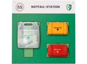 Paperflow Shadowboard „Notfall-Station“, Wandmontage, für 1 Augenspülstation/1 Erste-Hilfe-Kasten/1 Biogefahr-Set, erweiterbar, B 750 x H 750 mm, grün