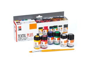 Marabu Stoffmalfarben-Set für dunkle Stoffe, bügelfixierbar und waschfest bis 40 °C, Inhalt: 6x 15 ml, Pinsel, Farben: gelb, rot, blau, grün, schwarz und…