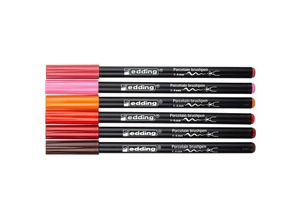 edding Porzellan-Pinselstifte, Inhalt: 6 Stifte in den Farben rot, orange, rosa, pink, bordeaux und dunkelrot, Strichstärke: 1–4 mm, mind. 15 Minuten…