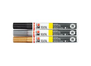 Marabu Stoffmalstifte-Set mit Glitzereffekt, hervorragend geeignet zum Malen auf hellen und dunklen Textilien. Nach dem Trocknen rückseitig bügeln. Stärke:…