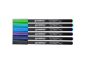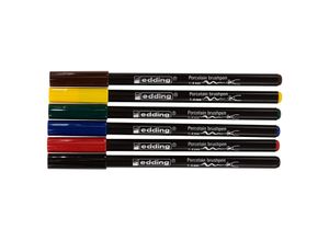 edding Porzellan-Pinselstifte-Set, Inhalt: 6 Stifte in den Farben schwarz, blau, grün, rot, gelb, braun, Strichstärke: 1–4 mm, mind. 15 Minuten trocknen…