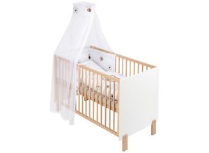 Dieses MY Baby LOU Gitterbett-Komplettset in Naturfarben, Braun sowie Weiß inklusive Lattenrost bietet Ihrem Kind von Anfang an einen geschützten,…
