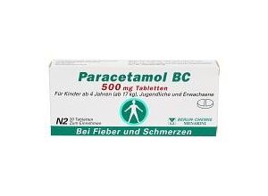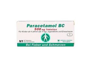 Paracetamol BC 500 mg Tabletten Wirkstoff: Paracetamol Anwendungsgebiete: Leichte bis mäßig starke Schmerzen, Fieber. Für Kinder ab 4 Jahren (ab 17kg),…