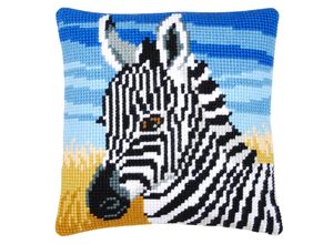 Kreuzstichkissen "Kleines Zebra". Superleicht zu sticken, geeignet für Kinder ab 8 Jahren. Komplettpackung: Anleitung, Garn, Sticknadel. Ohne Kissenrücken…