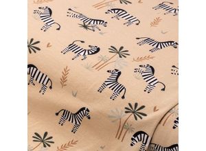 Baumwoll-Jersey „Zebra“ mit Elasthan, Farbe: braun-color, bi-elastisch, Motivgröße Zebra stehend: 4,5 x 3 cm, Breite: 150 cm, Gewicht: ca. 200 g/m².…
