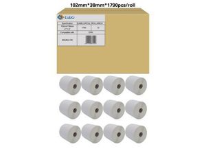 Etiketten G&G, kompatibel zu Zebra 880191-038D, 102 x 38 mm, selbstklebend, perforiert, Thermopapier, weiß, 12 x 1790 Stück