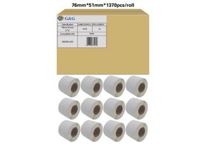 Etiketten G&G, kompatibel zu Zebra 800283-205, 76 x 51 mm, selbstklebend, perforiert, Thermopapier, weiß, 12 x 1370 Stück