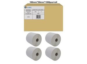 Etiketten G&G, kompatibel zu Zebra 87000, 100 x 50 mm, selbstklebend, Thermopapier, weiß, 4 x 1300 Stück