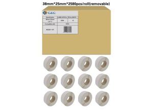 Etiketten G&G, kompatibel zu Zebra 800261-107, 38 x 25 mm, selbstklebend, ablösbar, beschichtet, perforiert, Thermopapier, weiß, 12 x 2580 Stück
