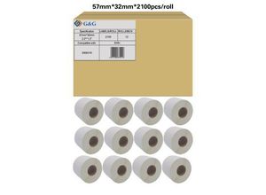Etiketten G&G, kompatibel zu Zebra 3006318, 57 x 32 mm, selbstklebend, beschichtet, perforiert, Thermopapier, weiß, 12 x 2100 Stück