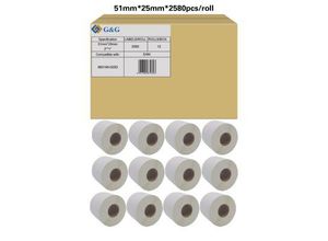 Etiketten G&G, kompatibel zu Zebra 880199-025D, 51 x 25 mm, selbstklebend, beschichtet, perforiert, Thermopapier, weiß, 12 x 2580 Stück