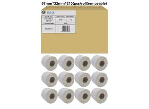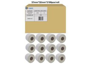 Etiketten G&G, kompatibel zu Zebra 800262-127, 57 x 32 mm, selbstklebend, ablösbar, beschichtet, perforiert, Thermopapier, weiß, 12 x 2100 Stück