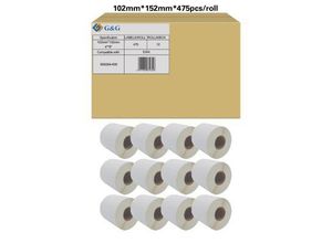 Etiketten G&G, kompatibel zu Zebra 800264-605, 102 x 152 mm, selbstklebend, beschichtet, perforiert, Thermopapier, weiß, 12 x 475 Stück