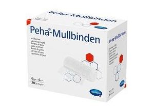 Mullbinden aus unelastischem Bindengewebe, mit gewebten Kanten. 4 m lang. 60 % Viskose 40 % Baumwolle Für Fixierverbände aller Art, z. B. von Wundauflagen…