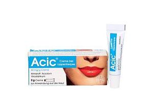 Acic Creme bei Lippenherpes, 50 mg/g Creme Wirkstoff: Aciclovir. Anwendungsgebiete Zur lindernden Behandlung von Schmerzen und Juckreiz bei häufig…