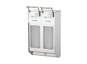 Reihenspender, mit 2 Spendern à 1000 ml, Edelstahl. Anlieferung = montiert. Inhalt = 2 Liter. Gehäusefarbe = Edelstahl. Höhe = 321 mm. Breite = 182 mm.…