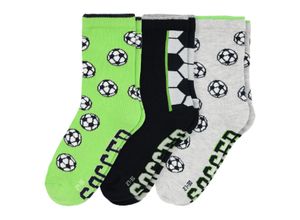 Drei Paar Socken in Hellgrau, Grün und Schwarz mit verschiedenen Fußball-Motiven. Jeweils mit elastischen Bündchen für einen bequemen Sitz. Deshalb ist…