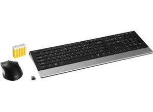 Schäfer Shop Select Sparset Funktastatur & Funkmaus Highline, QWERTZ, Handballenauflage, Maus mit 5 Tasten, bis 1600 dpi, bis 10 m, schwarz-silber