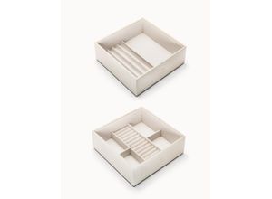 Set aus zwei stapelbaren Schmucktabletts aus Kunstleder mit geprägtem PURELEI Logo. Die einzelnen Tabletts haben unterschiedliche Einlagen, damit Du…