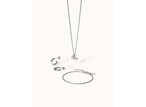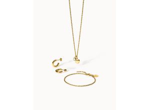 Das Seine Set besteht aus einer Kette mit einem kleinen Herz- und einem Schmucksteinanhänger, einem passenden Armband und klassischen Creolen. Die…