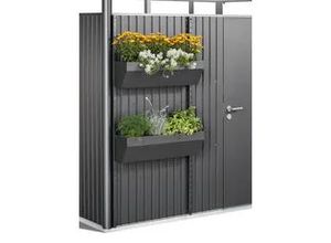 Zwei Steher werden an der Außenwand des Gerätehauses angeschraubt und die Blumenkästen in beliebiger Höhe eingehängt. Kunststoffeinsätze, zur einfacheren…