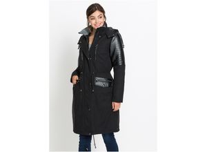 bonprix Damen Long-Parka mit Lederimitateinsatz in schwarz: Ein stylisher Begleiter für die City ist dieser Parka mit Lederimitateinsatz. Die Besätze an…