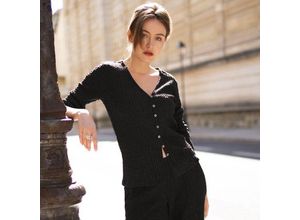 Eine herrlich softe, griffangenehme Textur verwandelt diesen klassischen Cardigan in einen echten Hingucker. Das ganze Jahr tragbar, ob nun entspannt zum…