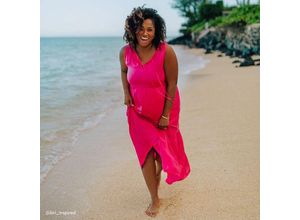 Zart, fließend und wunderbar feminin. Über einem Badeanzug verleiht dieses Strandkleid in stilvoller Maxilänge eine Lage purer Eleganz. Und noch dazu ist…