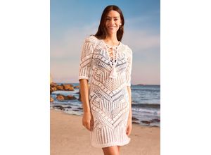 bonprix Damen Strand Strickkleid in weiß: Luftiges Strickkleid aus Strick für den Strand. Mit Schnürung am Ausschnitt. Ärmel in 3/4-Länge. Weitere…